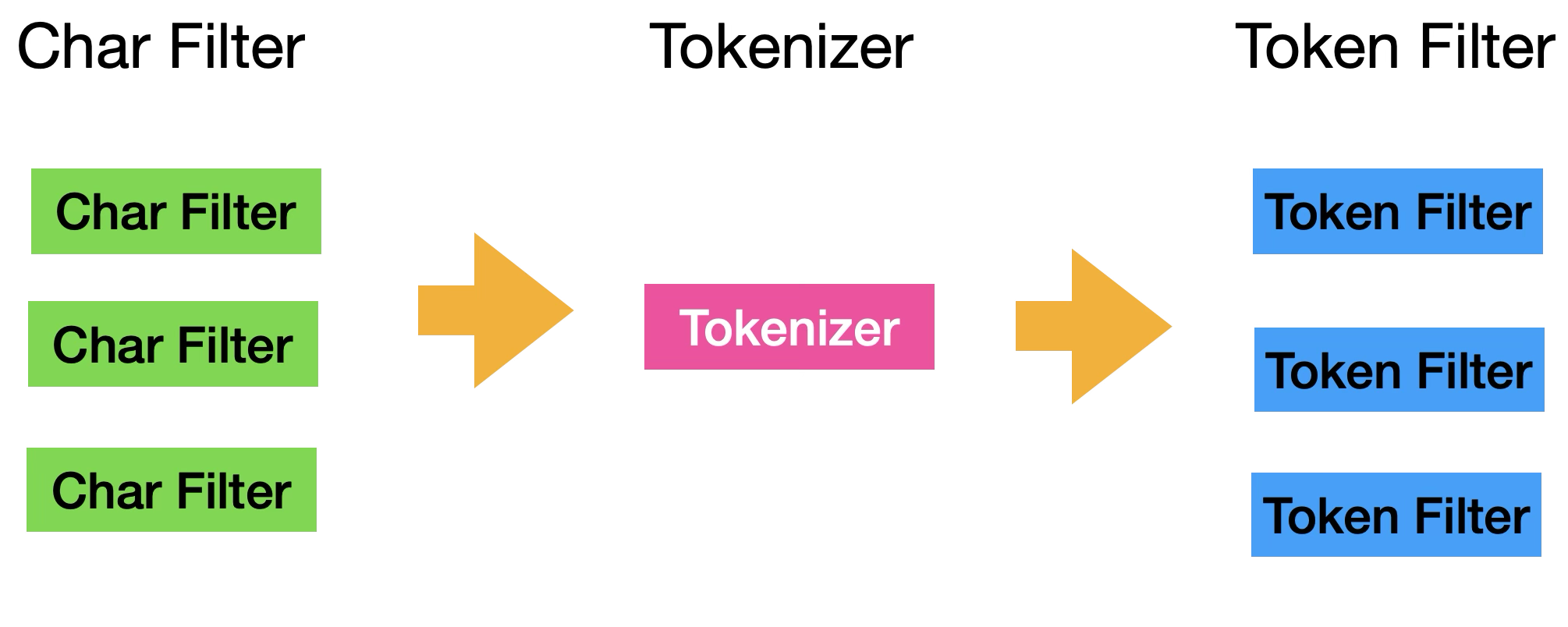 analyzer를 구성하는데 있어서 Char Filter와 Token Filter는 없어도 무방하지만 Tokenizer는 반드시 설정이 되어야 한다.